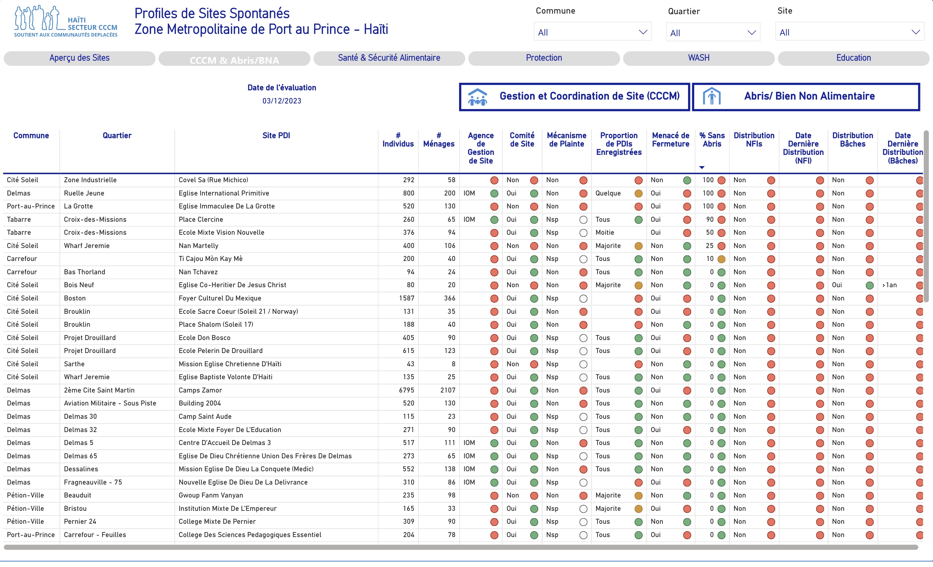 The site profile report aims to identify the infrastructure and services, as well as the challenges and conditions faced by internally displaced persons (IDPs) in camps and camp-like environments managed by IOM’s Camp Coordination and Management (CCCM) in Haiti.